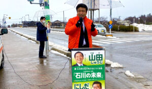 日程の合間に津幡町にて街頭活動です