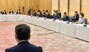 官邸にて、教育未来創造会議に国交大臣代理として出席