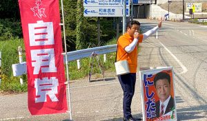 輪島市洲衛交差点にて街頭活動後、能登−羽田午前便で上京です