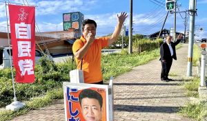 輪島市内にて宮下県議と共に街頭活動を行いました