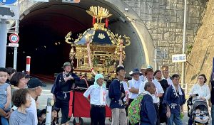 堂前県議、金七能登町議長と共に小木袖ぎりこ祭りに立ち寄りました。