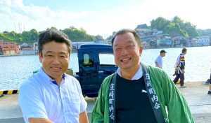 堂前県議、金七能登町議長と共に小木袖ぎりこ祭りに立ち寄りました。