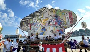 堂前県議、金七能登町議長と共に小木袖ぎりこ祭りに立ち寄りました。