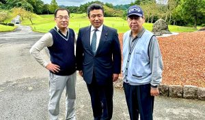 やけだ県議ゴルフコンペに立ち寄り、コースを回り終えた参加者の皆さんをお出迎えです。