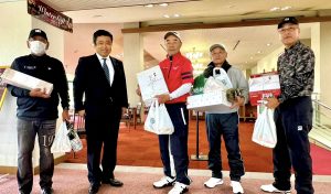 やけだ県議ゴルフコンペに立ち寄り、コースを回り終えた参加者の皆さんをお出迎えです。